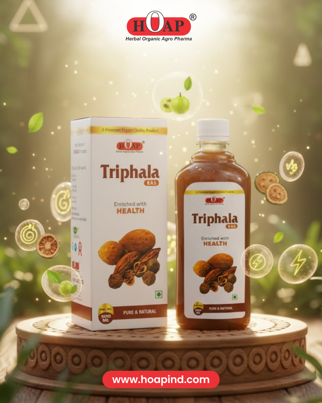 HOAP Triphala Ras: A classic Ayurvedic formulation that supports digestion, improves gut health, aids gentle detoxification, and promotes overall body balance naturally.