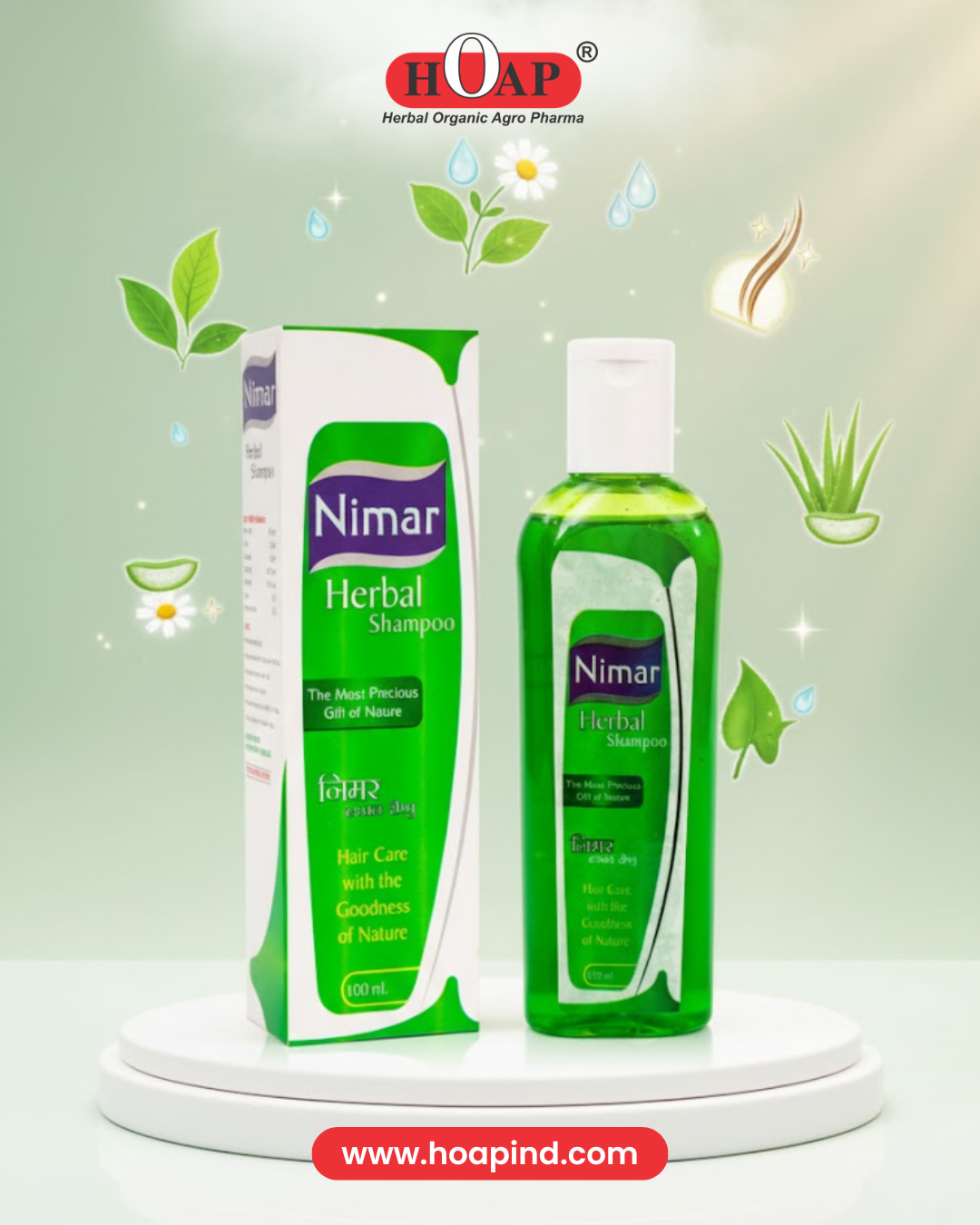 Nimar Herbal Shampoo: A gentle herbal shampoo enriched with natural ingredients to cleanse the scalp, reduce hair fall, and keep hair soft, strong, and naturally healthy with every wash.